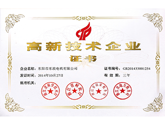 東政電機成立于2003年,榮獲國家高新技術企業,為浙江制造、浙江省“專精特新”、國家專精特新“小巨人”認定企業 。榮獲浙江省創新型試點企業、浙江省專利示范企業、金華市勞動關系和諧企業、浙江省工人先鋒號、東陽市政府特別獎、東陽市畝產稅收英雄、東陽市長創新獎等榮譽稱號。